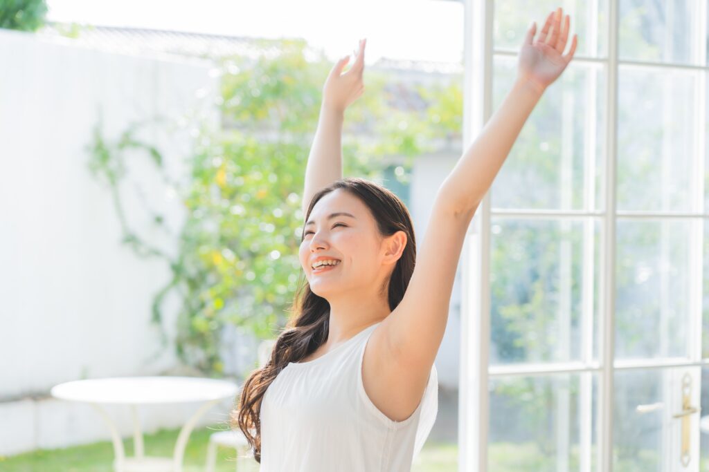 朝は、体を「起こす」ための軽いストレッチがおすすめです。