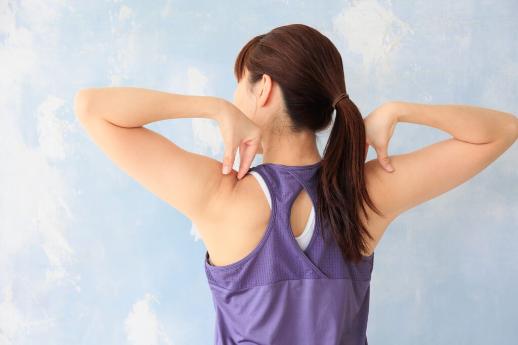 寝起きに首・肩・背中を中心に3〜5分ほど動かすと、血流が促進され、1日の代謝がアップします。